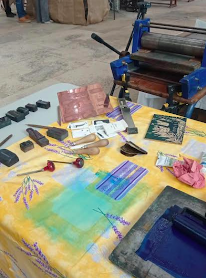 presses et une collection exceptionnelle de plusieurs tonnes de caractères de plomb de toutes tailles sont à disposition des artistes.